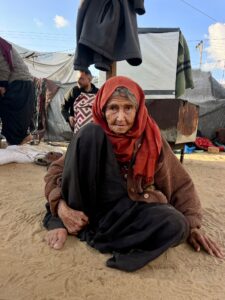 Amnesty International. Sadiqa Al-Barrawi, aged approximately 90, has been displaced three times since October 2023.